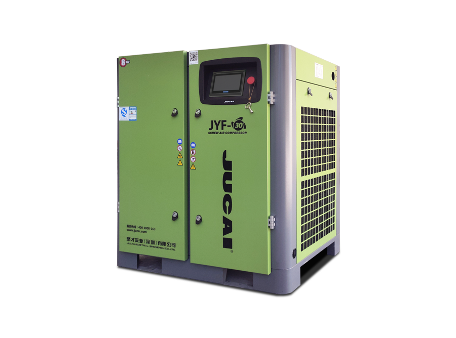 JUCAI螺桿空壓機主機,大轉子低轉速設計,采用先進的螺旋齒型技術,瑞典原裝進口SKF圓錐滾柱軸承,噪音低,能耗低。