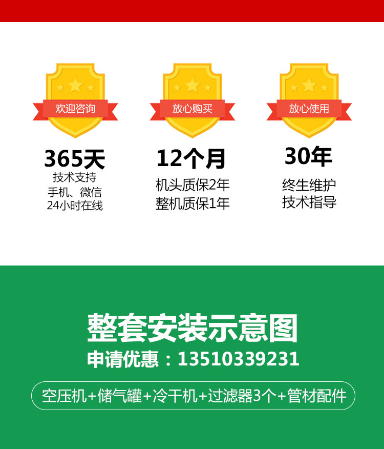 24小時空壓機售后服務體系,30分鐘內響應、2小時抵達現場,公司自主研發的ERP系統能實時查詢每一臺空壓機出廠時的BOM清單和測試數據,保障售后服務準確性。